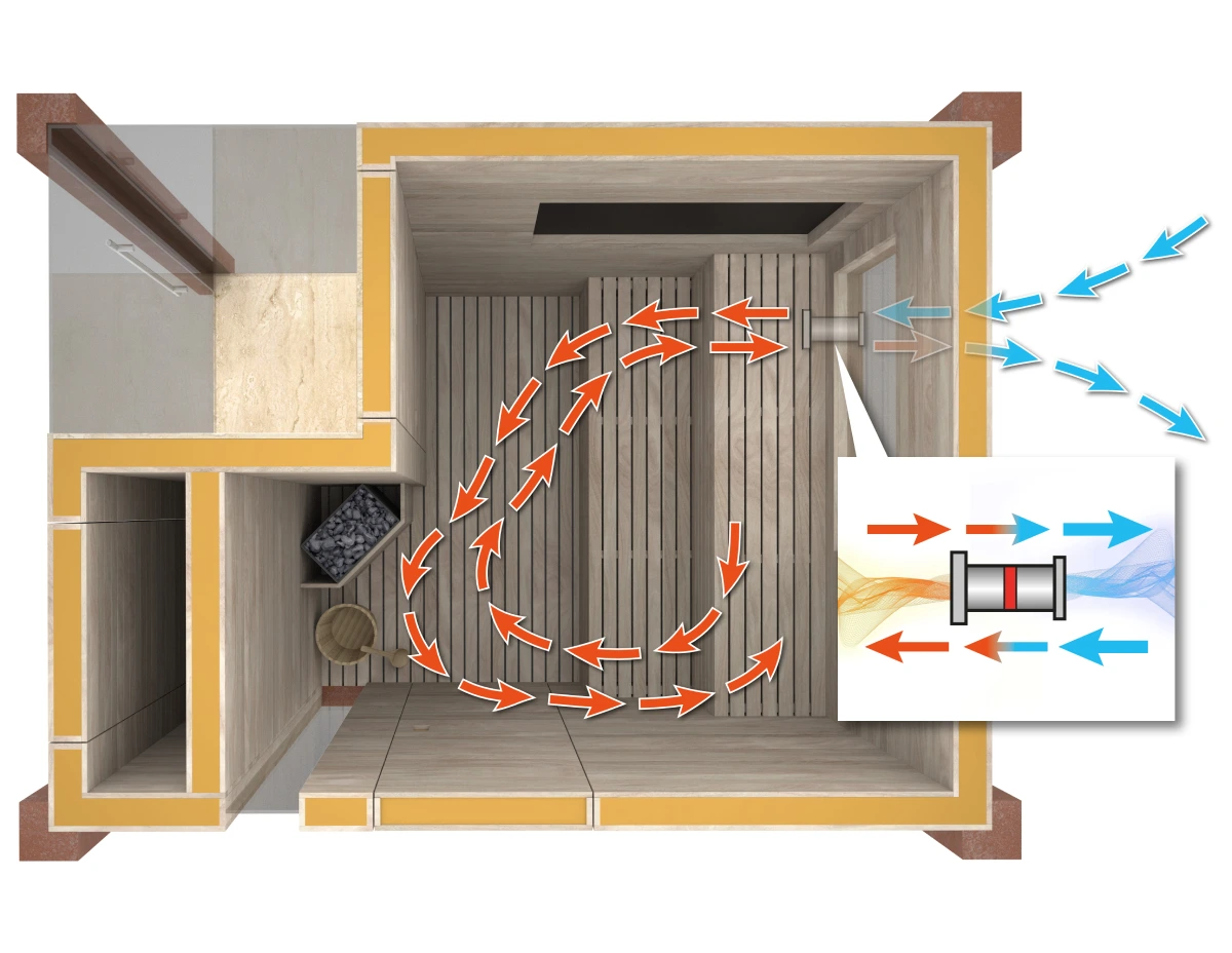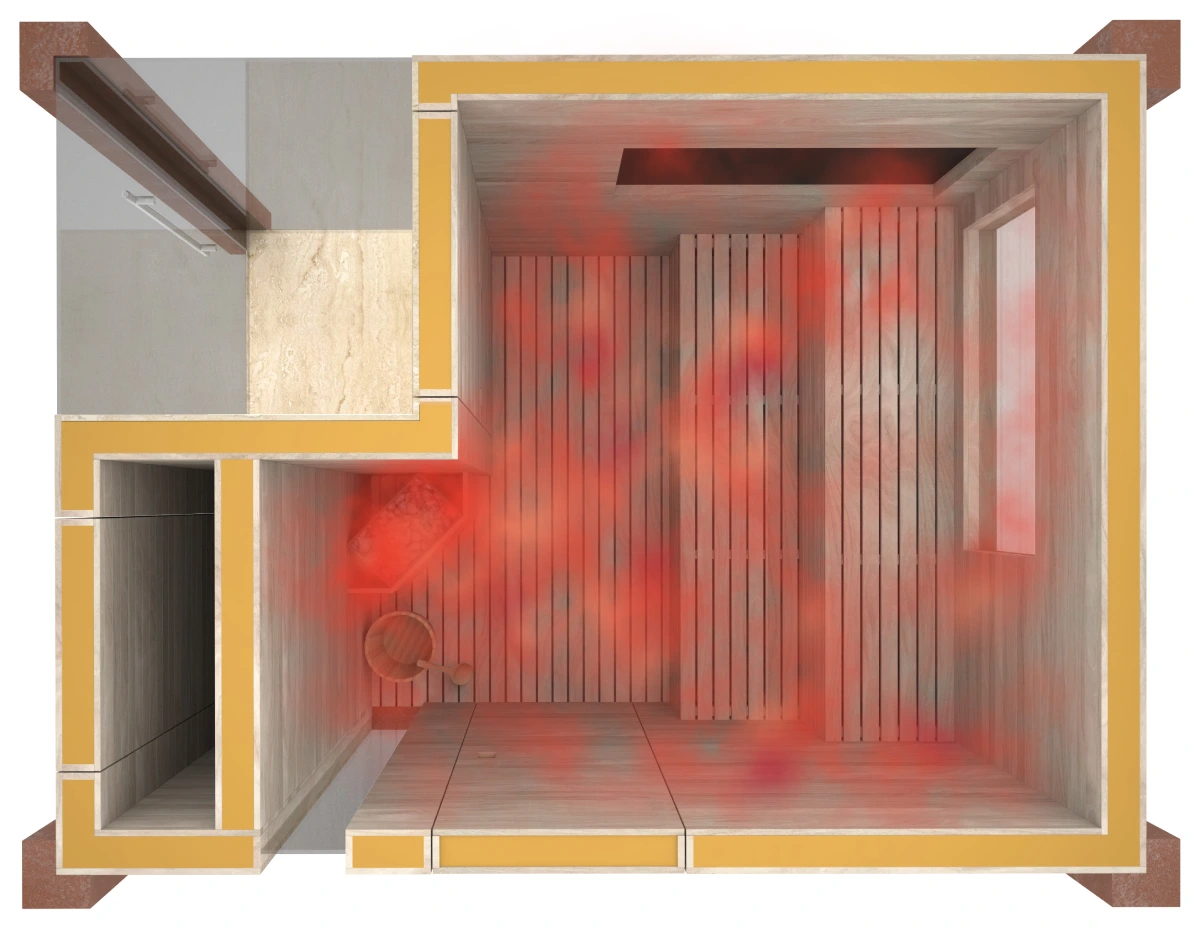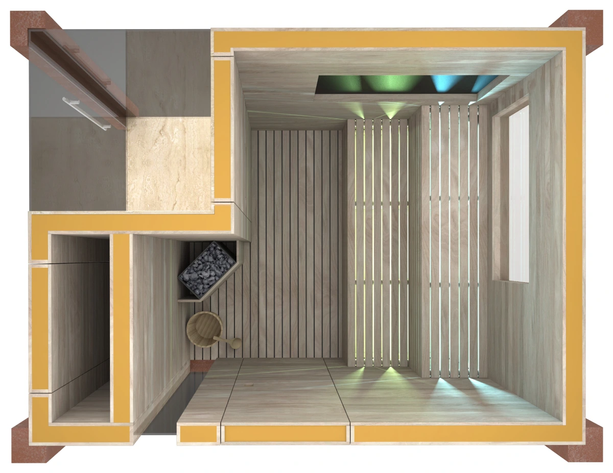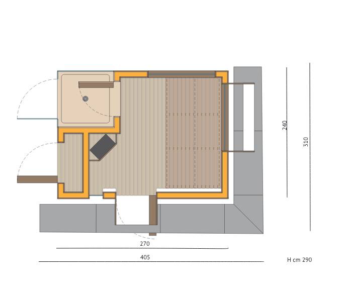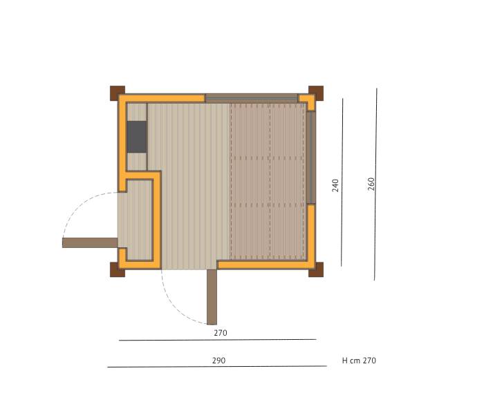 I modelli 24&32 includono inoltre un box doccia da 100 x 100 cm, con apertura sia verso l’esterno che dall’interno della sauna, rifinito con un effetto pietra naturale.