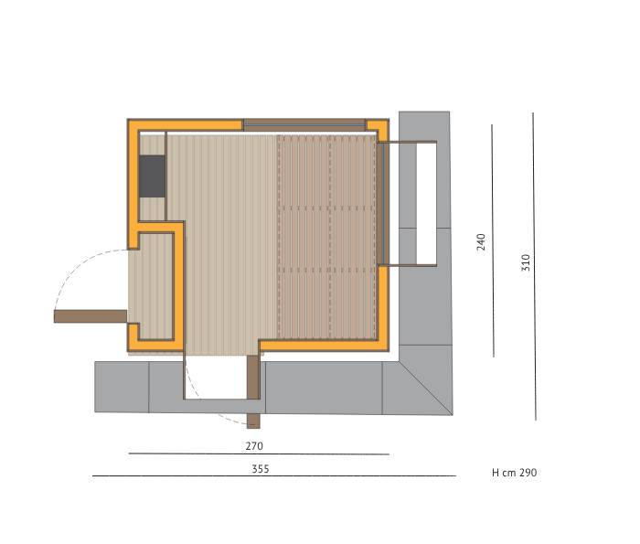 Un progetto che valorizza la personalizzazione dell’esperienza: ogni livello della Matriosca riduce gradualmente il numero di funzioni, ma conserva alcune caratteristiche fondamentali come la ventilazione meccanica controllata (VMC), le luci di esercizio, il triplo vetro, la coibentazione interna in sughero e quella esterna in materiale termoriflettente.